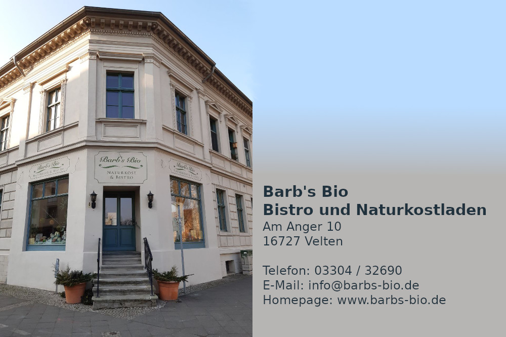 Seit über 30 Jahren kann man in Velten in „Barb’s Bio Bistro und Naturkostladen“ gut ausgewählte Bioprodukte und regionale Spezialitäten kaufen. Das von Barbara Wachowiak sympathisch geführte Geschäft ist ein Kleinod im Vergleich zu den Bio-Supermärkten in den Großstädten. Frisches Brot, eine kleine Wurst- und Käsetheke, Sauerkraut aus dem Fass und frisch gemahlenes Mehl sind nur ein kleiner Auszug aus dem Angebot. Hat man Fragen zu den angebotenen Produkten, erhält man immer eine kompetente Antwort. Auch ein kleines Bistro gehört mit dazu. Dort gibt es zu der kleinen Speisekarte täglich ein zusätzliches saisonales Gericht. Da die Inhaberin sich langsam zur Ruhe setzen möchte, sucht sie einen Nachfolger für ihr Geschäft. Gabriele Schade hat mit ihr über die nicht immer leichten vergangenen Jahre gesprochen.