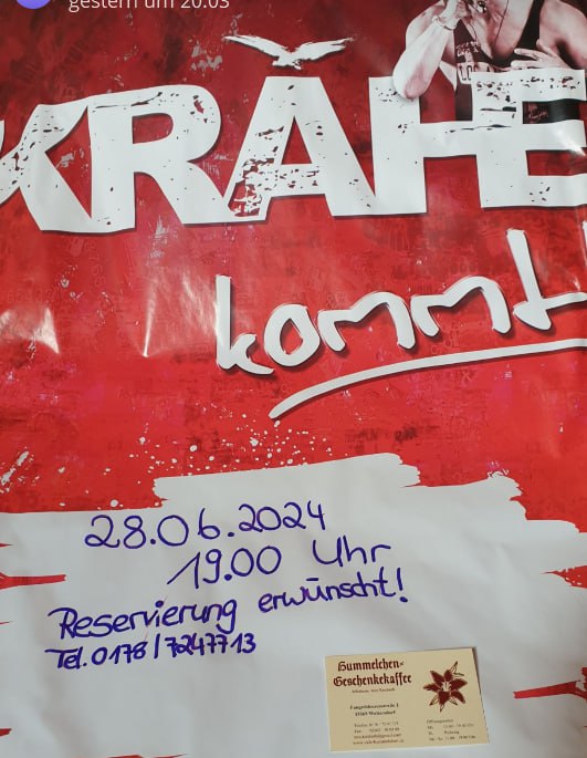 Krähe kommt am Freitag, den 28.06.2024 um 19:00 Uhr ins Hummelchen in Woltersdorf