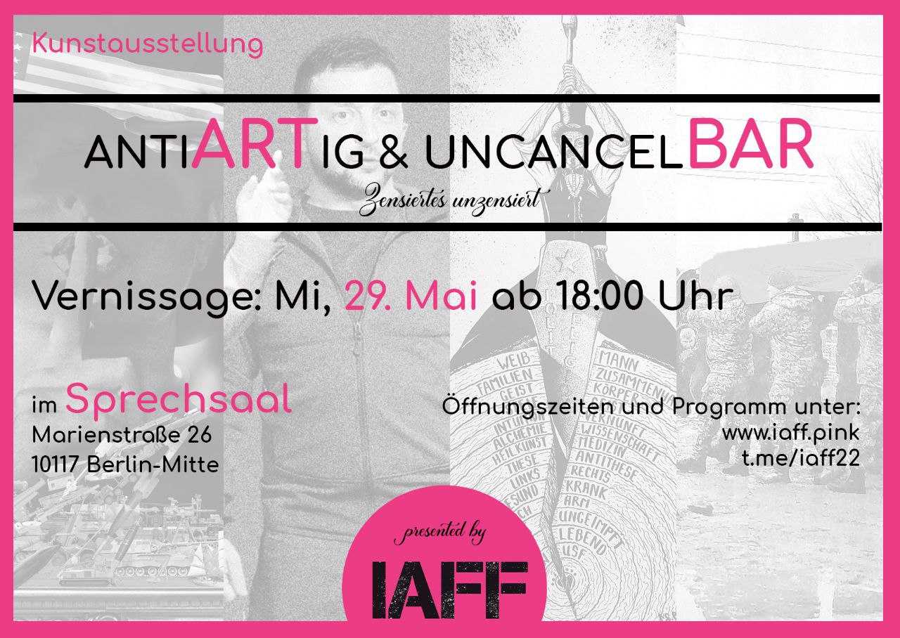 Liebe Freunde, die Freie Kunst erobert Berlin! Nach dem großartigen Erfolg der letzten Ausstellung geht es gleich weiter. Die Künstler des IAFF laden zu ihrer neuen Ausstellung 🟣 antiARTig & uncancelBAR - Zensiertes unzensiert 🟣 im Sprechsaal in Berlin-Mitte ein. Mittwoch 29 Mai 2024: Vernissage von 18:00 Uhr bis 24:00 Uhr unter anderem mit einer […]