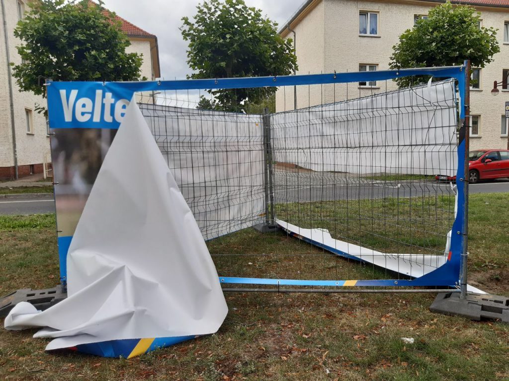 Anmerkung: Am Samstag, den 26. Juli 2025, sind mehrere Großplakate von Herrn Schulze in der Poststraße und am Bahnhof in Velten vermutlich mit einem Messer zerschnitten worden.