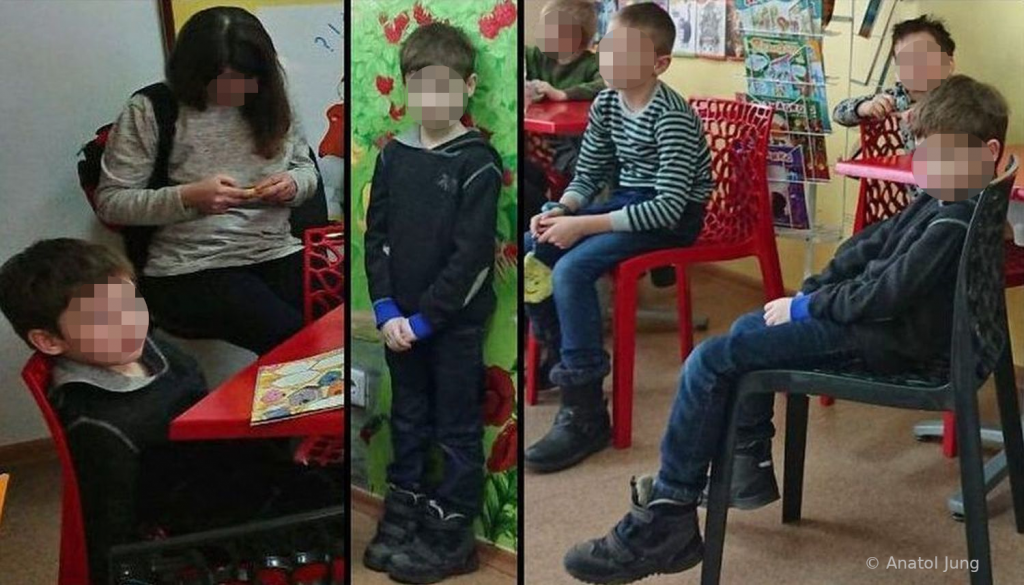 Die miesen Bonzen in Berlin und Kiew kümmert all das nicht. Vergeblich informiere ich sie regelmäßig über Emils und Elias‘ Lage und verlange behördliches Einschreiten gegen diese Art von Kindesmisshandlung. Von westlich gesonnenen Müttern, deren Kinder zur selben Schule gehen, bekam ich neuere Bilder von Emil zugespielt. Was sie über seinen körperlichen und seelischen Zustand aussagen, ist alarmierend.