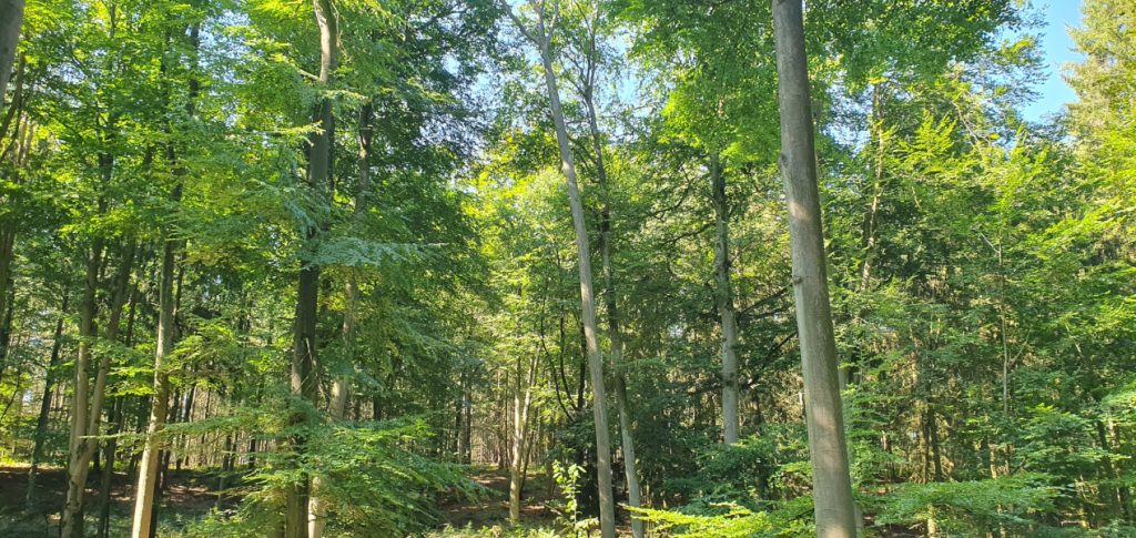 Revierförster Meier, der mit sachkundigen Hinweisen den Spaziergang am 10.09.23 begleitete, merkte dazu an, dass Laub- und Mischwälder besonders schützenswert sind. Dies sieht die Planungskommission in ihrem Umweltbericht übrigens genauso [3]. Meier wies darauf hin, dass bei der Bestandsaufnahme im Jahre 2002 nur der Oberstand erfasst wurde, der damals vor allem durch Nadelholz gekennzeichnet war. Der nachwachsende Mittel- und Unterstand (kleine und mittel-hohe Bäume) dominiert heute – 20 Jahre später – diesen Wald.